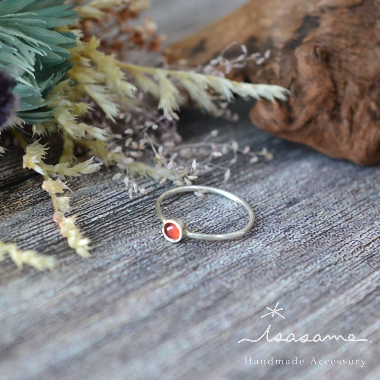 ガーネット 3mm/4mmカボション 覆輪留めSV950リング