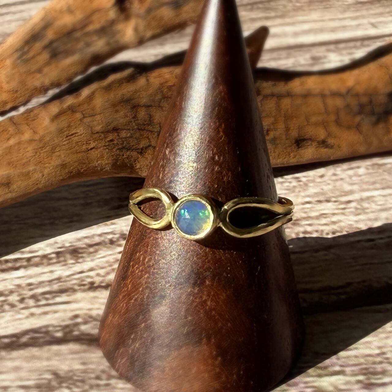 真鍮のリングに、直径4mmのエチオピアオパールをあしらいました。
