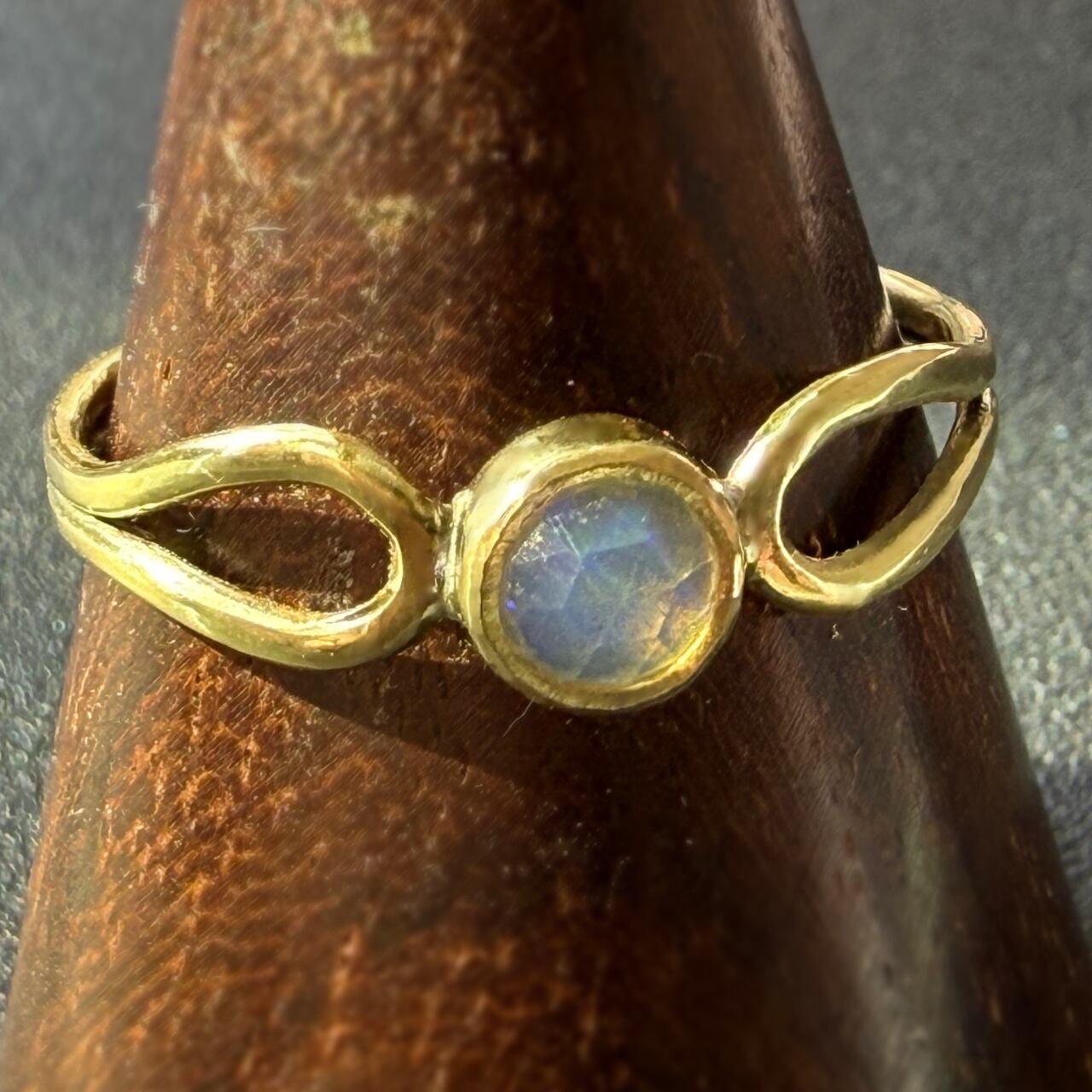 エチオピアオパール 4mm ローズカット 曲線仕立ての真鍮リング[Slim]